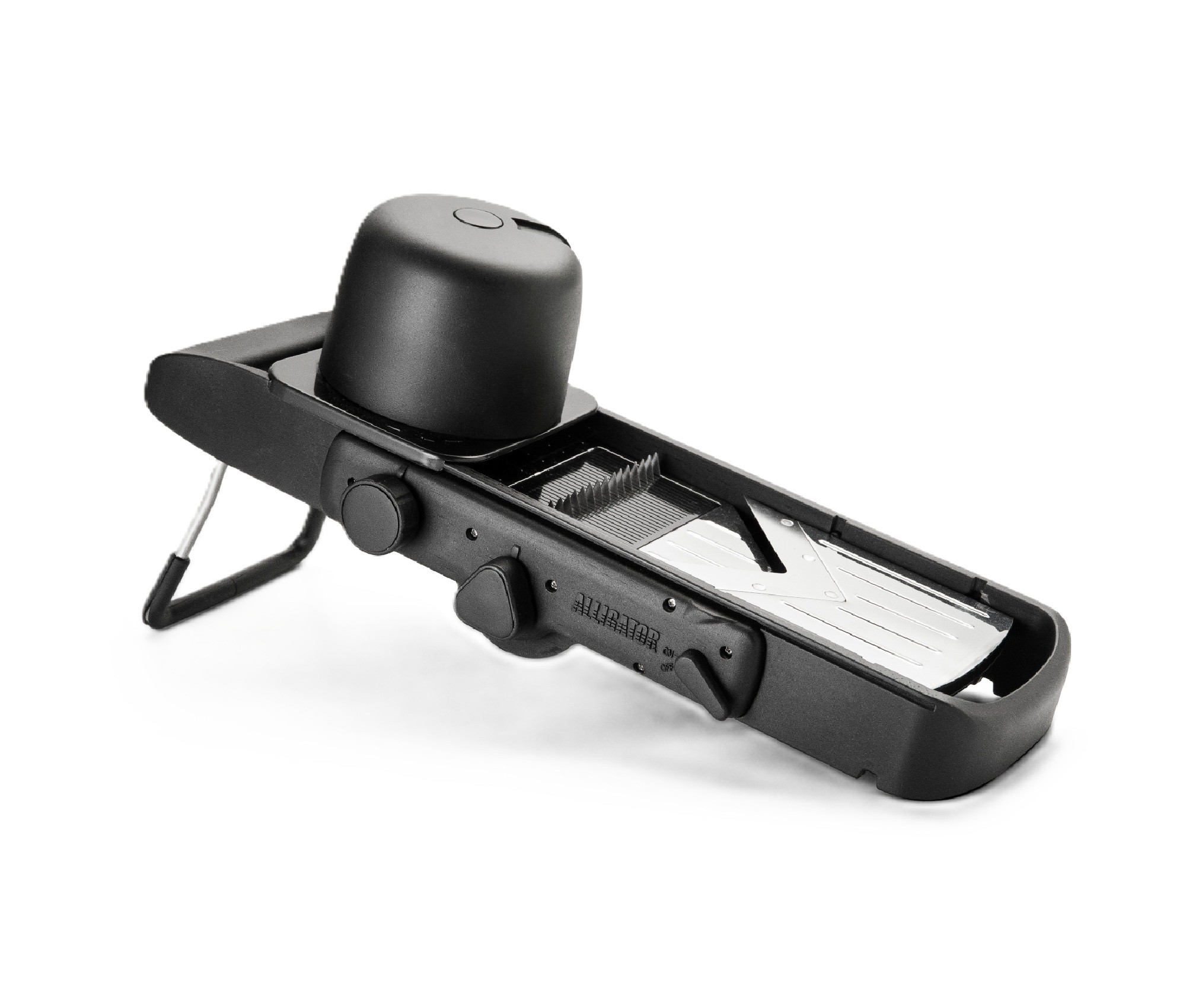 Patentēta ALLIGATOR® „Chopper” griezēja asmeņi nekad neskar pamatni vai jūsu pirkstus, tāpēc asmeņi paliek asi un lietošanai droši. ALLIGATOR® „Chopper” griezēju var mazgāt trauku mazgājamā mašīnā, taču tā asmeņi, tāpat kā citiem virtuves nažiem, ilgāk paliks asi, ja to mazgāsiet ar rokām. Visas griezēja daļas ir izgatavotas no materiāliem, kas piemēroti saskarei ar pārtiku.